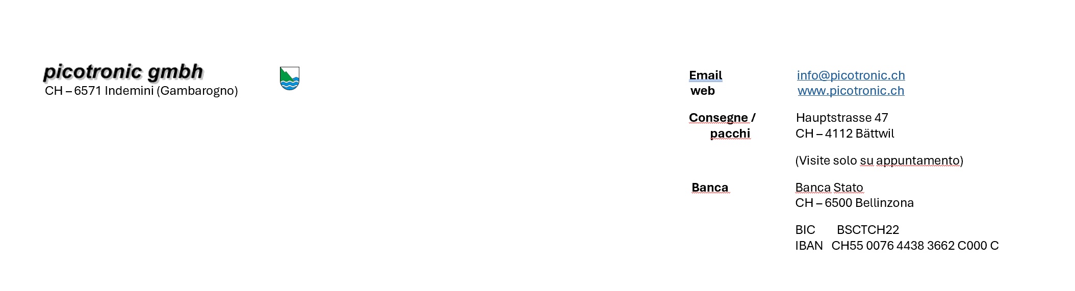 Quanto segue si applica a tutti i collegamenti su questo sito Web che conducono a siti Internet di terzi: picotronic sagl non ha alcuna influenza sul contenuto o sul design dei siti collegati. Ci allontaniamo da tutti i contenuti delle pagine collegate che violino la legge, lo statuto e la morale e decliniamo ogni responsabilità in merito. Tutti gli elementi di questo sito Web appartengono esclusivamente e integralmente a picotronic gmbh (diritti d'autore e altri diritti), salvo diversa indicazione. Il materiale pubblicato può essere utilizzato, scaricato e stampato per scopi non commerciali. La riproduzione totale o parziale, la modifica, l'uso o l'ulteriore distribuzione di tutti i contenuti, la grafica e le informazioni sono vietati senza il previo consenso di picotronic sagl.